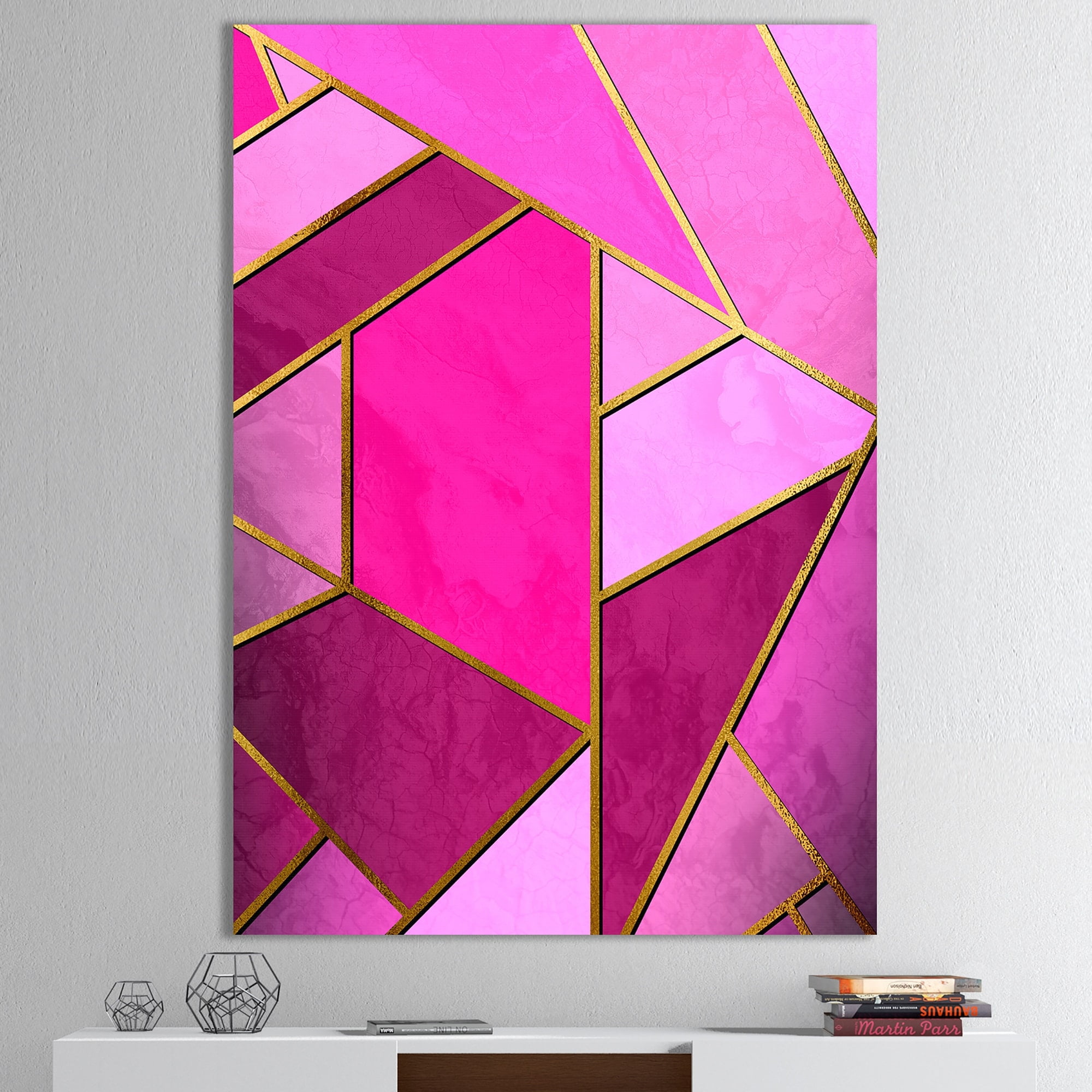 Design Art Designart Yellow Triangular Composition Over Shades Of Purple And Pink Modern Contemporary Premium Canvas Wall Art 12 In Wide X 20 In Walmart Com